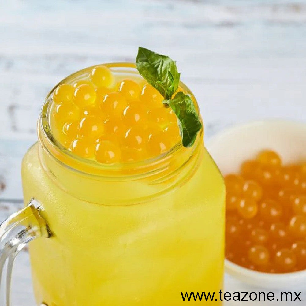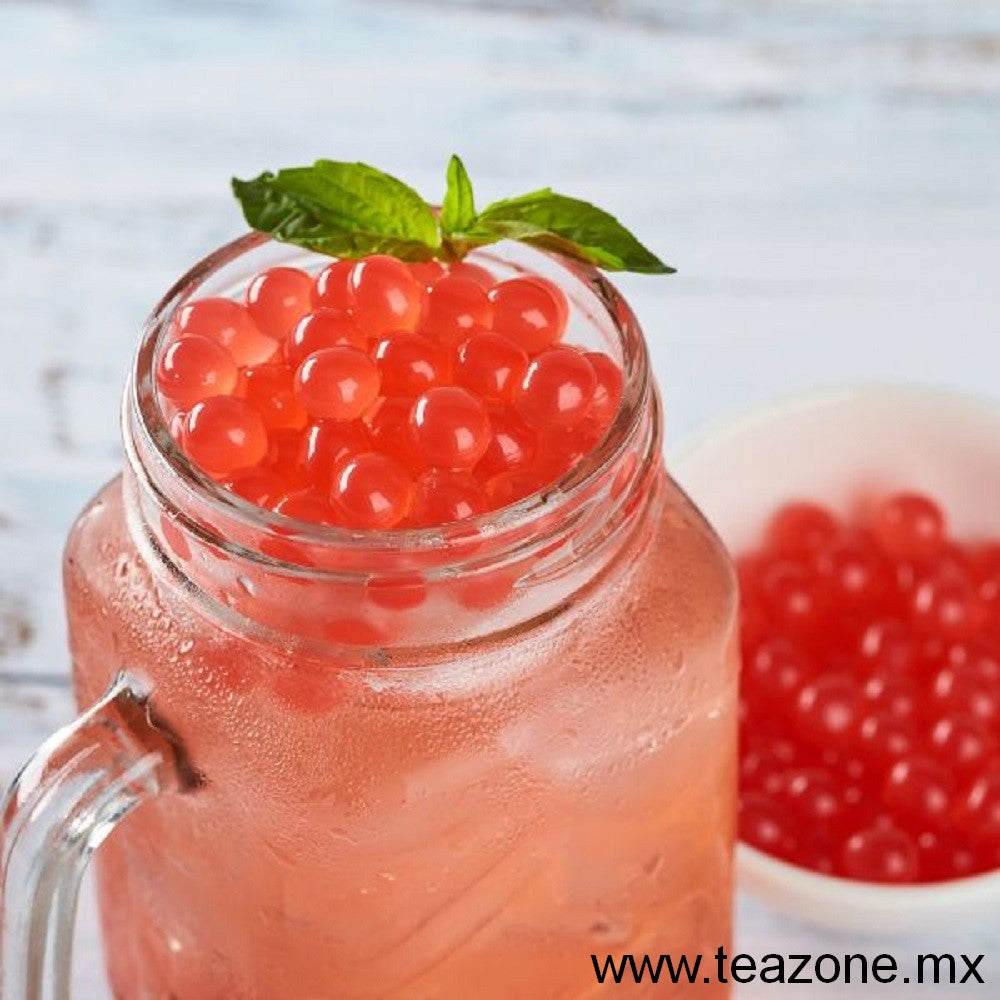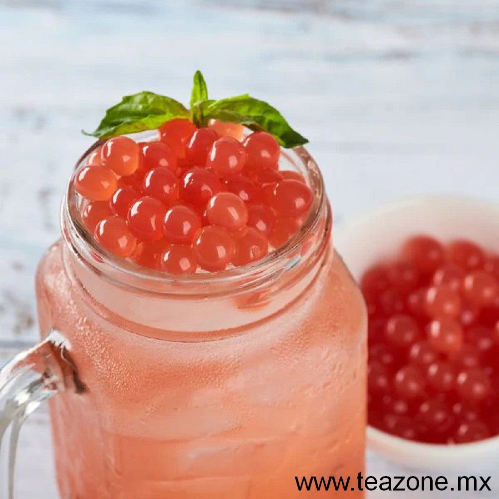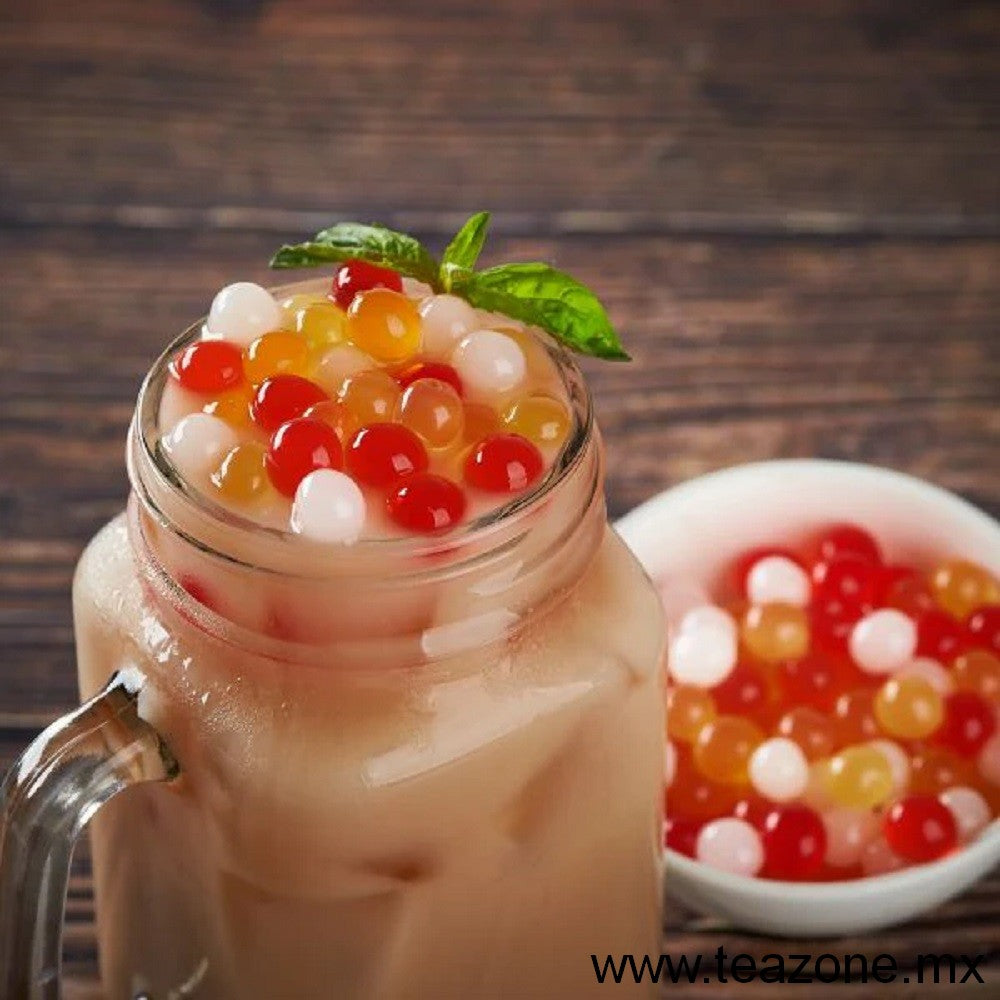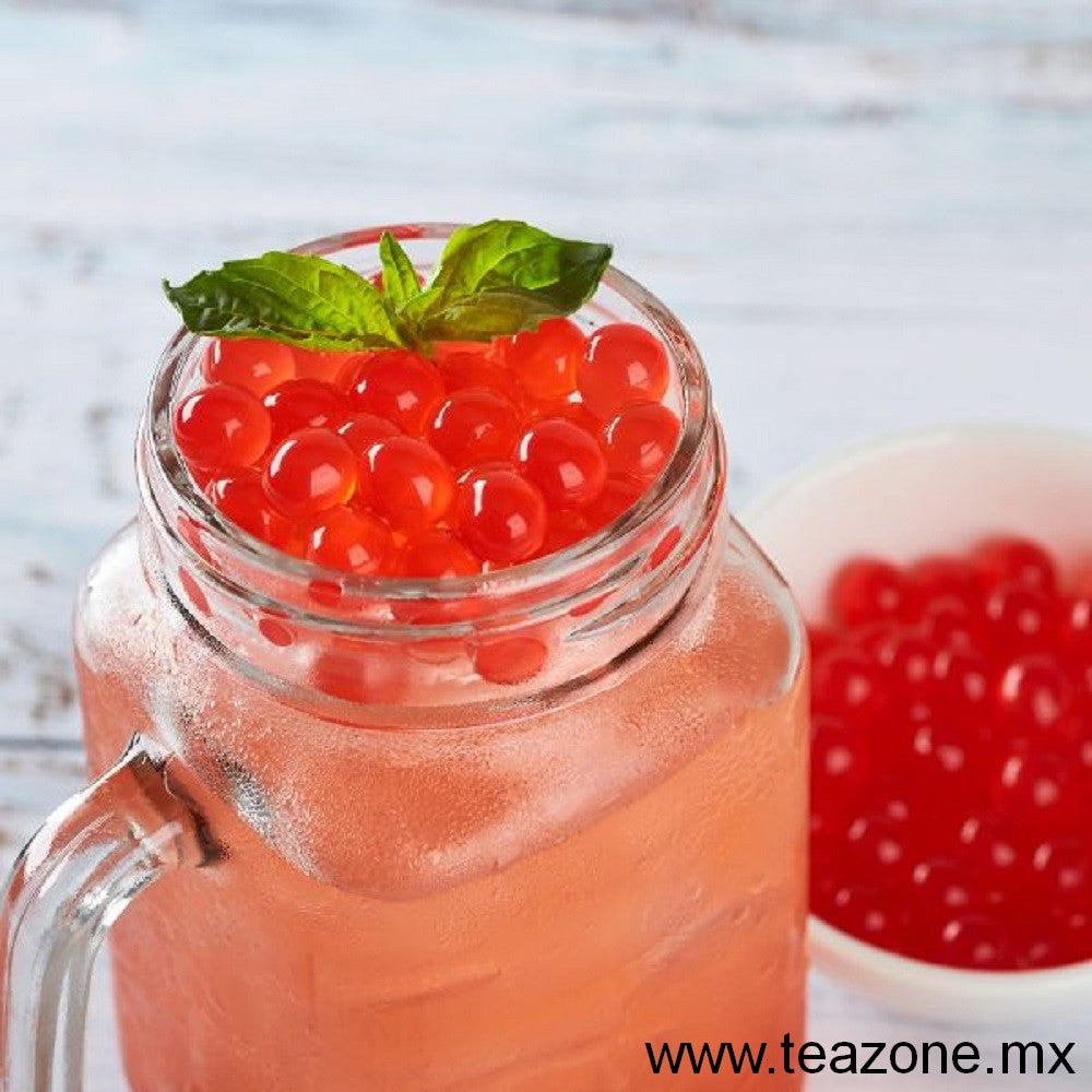 Las perlas explosivas Tea Zone han causado sensación por su originalidad y gran sabor. Están rellenas de un dulce caramelo líquido sabor a frutas. Son ideales para acompañar una gran variedad de bebidas de tipo frappé, smoothie y sodas italianas, además se pueden utilizar para preparar deliciosos postres.